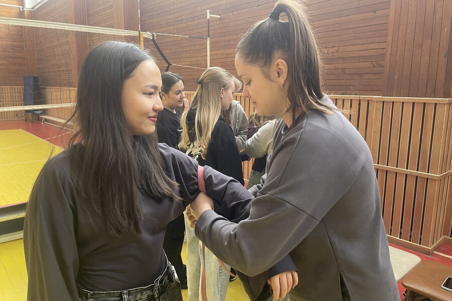 Очень подробно разобрали тему кровотечений. Нам не просто показали жгут, а дали примерить его друг на друге: накладывать на бедро и плечо, засекать время, понимать, как сильно затягивать, чтобы не навредить, но остановить кровь. Отработали наложение бинтов – от простых круговых до сложных на локтевые суставы.