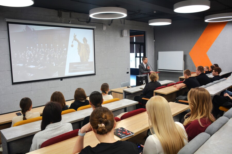 Встреча была посвящена 80-летию Нюрнбергского процесса. Лектор не только восстановил ход событий 1945 года, но и объяснил, почему решения того суда актуальны сегодня как никогда. 20 ноября 1945 года в немецком городе Нюрнберг начался беспрецедентный процесс. Впервые в истории государства победители судили побеждённых не по праву силы, а по силе права. Перед судом предстал 21 преступник. Студенты с большим вниманием слушали о судьбах подсудимых: 12 из них были приговорены к смертной казни (включая Геринга, покончившего с собой за два часа до казни), 7 получили длительные тюремные сроки, трое были оправданы.