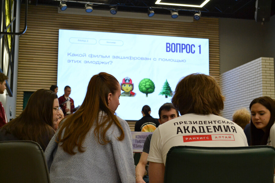 В преддверии праздника члены Студенческого совета Алтайского филиала РАНХиГС организовали интерактивную программу «Студенчество на максимум». Команды всех студенческих объединений соревновались в познании различных сфер жизни студента: от ассоциаций, связанных с преподавателями Академии, до современных русских фильмов и песен, зашифрованных ребусами.