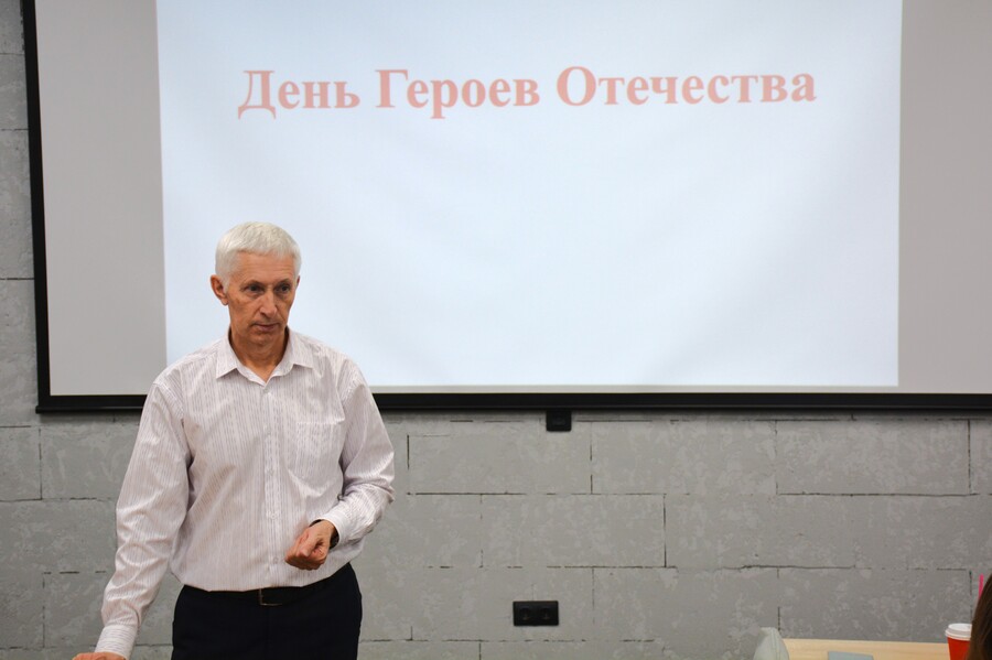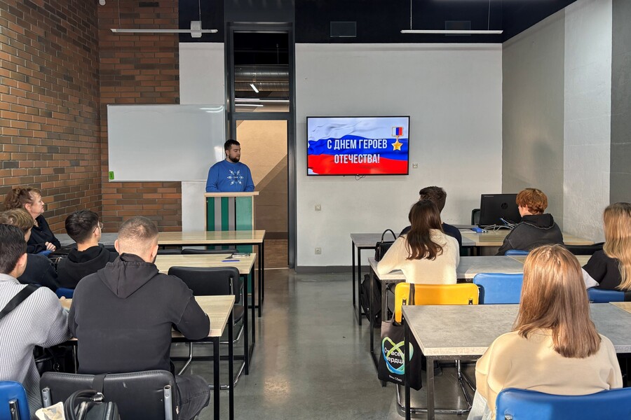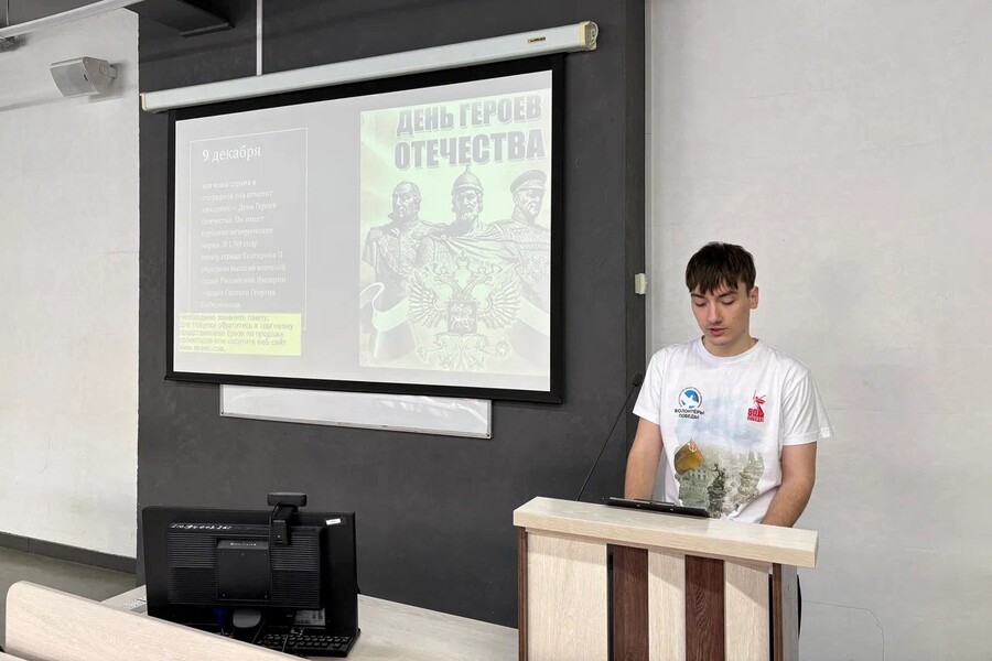 На лекциях Виктор Исаев, доцент кафедры гуманитарных и естественно-научных дисциплин, познакомил студентов 1 курса с историей дня, известного в Российской империи как День георгиевских кавалеров. Ребята просмотрели памятный видеоклип «Нежность» в рамках Международной патриотической акции «Улицы в лицах» при поддержке МЧС России, Минкульта Россиии и Культурного фонда Александры Пахмутовой.