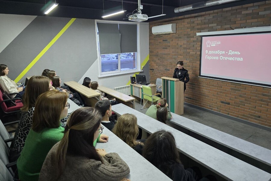 Студенты направления «Медиакоммуникации» провели литературный вечер, посвященный Дню Героев Отечества. Прозвучали стихи Михаила Лермонтова, Николая Некрасова, Владимира Высоцкого, Константина Симонова, Юлии Друниной и других поэтов о подвигах и судьбах, о вере и любви, спасающей в самых тяжелых ситуациях. Самым пронзительным оказалось исполнение монолога жены летчика «Как я встретила Победу» Ксении Степанычевой, студентки направления «Медиакоммуникации».