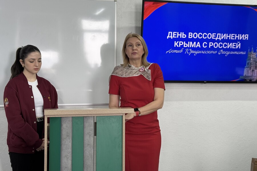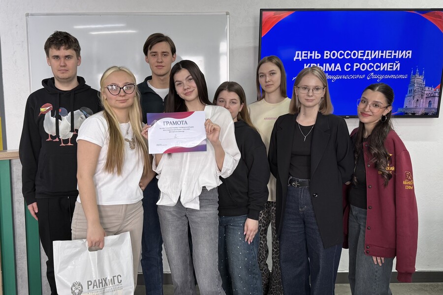 Актив юридического факультета провел мероприятие, приуроченное к воссоединению Крыма с Россией. Ребята разных курсов и направлений проверили и пополнили свои знания, касающиеся истории Крыма, культурного наследия и событий воссоединения Крыма с Россией, отвечая на различные вопросы, в конце встречи команды ребят на плакатах отразили свое видение единства Крыма и России.