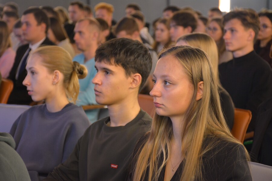 Также к студентам обратился командир мобильного отряда особого назначения «Алтай» Управления Федеральной службы войск национальной Российской Федерации по Алтайскому краю, полковник полиции, выпускник Алтайского филиала Президентской академии Александр Сажин.