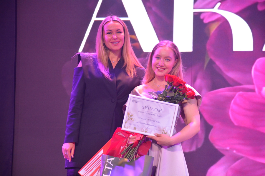 Титул «Мисс Академия – 2026» завоевала Эвелина Рева, студентка 1 курса направления «Государственное и муниципальное управление»! А «Вице-мисс Академия – 2026» стала Алиса Кузьмина, студентка 2 курса направления «Экономика».