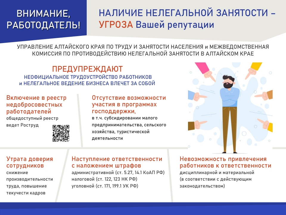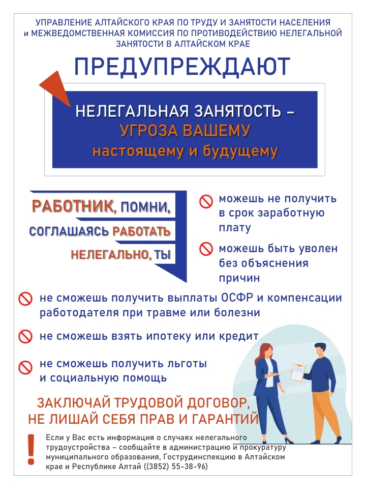 Комитет по делам молодежи администрации города Барнаула подготовил памятки о последствиях нелегальной занятости. Предлагаем их изучить.