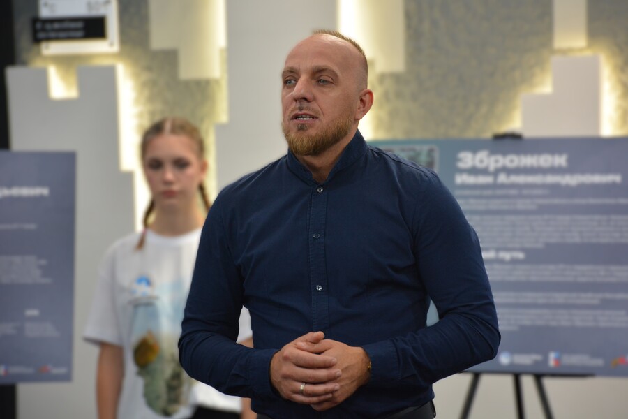 Кирилл Склемин, преподаватель кафедры гуманитарных и естественнонаучных дисциплин Алтайского филиала РАНХиГС, выступил с приветственным словом и поблагодарил организаторов выставки.