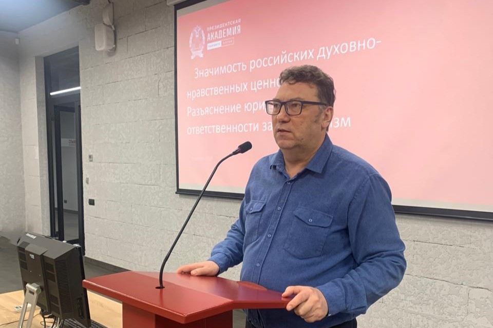 27 ноября в Алтайском филиале РАНХиГС состоялась беседа Андрея Титаренко, доцента кафедры уголовного права и уголовного процесса и криминалистики, к. ю. н., с первокурсниками направлений «Государственное и муниципальное управление» и «Юриспруденция» о профилактике экстремизма среди молодого поколения.