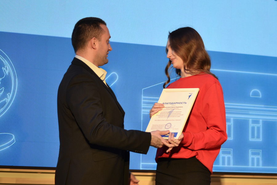 Активистов первичного отделения, которые внесли значительный вклад в его развитие, поощрили благодарностью за активное участие и вклад в реализацию деятельности «Движения Первых» в Алтайском крае, а наставнику нашего первичного отделения Арине Васильченко вручили благодарность за развитие первичного отделения «Движения Первых» и личный вклад в формирование активной жизненной позиции у детей и молодежи Алтайского края.