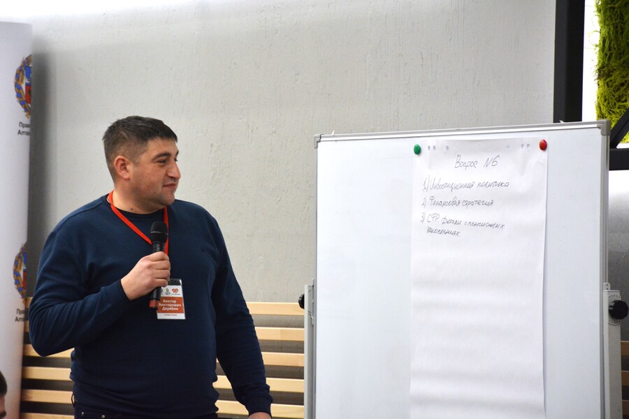 Завершился день мастерской стратегий, которую провели Вазген Тирацуян, эксперт Высшей школы государственного управления РАНХиГС, и Любовь Кеник, заместитель министра экономического развития Алтайского края. Участники получили возможность разработать и обсудить эффективные стратегии для развития региона.