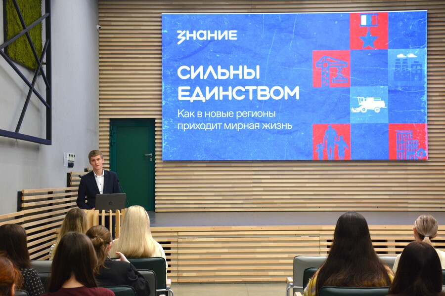 В рамках празднования Дня воссоединения ДНР, ЛНР, Запорожской и Херсонской областей с РФ прошли лекции «Сильны единством. Как в новые регионы приходит мирная жизнь». Студенты узнали о целях и задачах специальной военной операции, о том, как развивается жизнь в новых регионах. Лектор рассказал, какие реализуется проекты в здравоохранении, образовании, культуре, спорте и туризме, транспорте и дорожной сети, топливно-энергетическом и агропромышленном комплексах, промышленности, поддержке малого и среднего бизнеса.