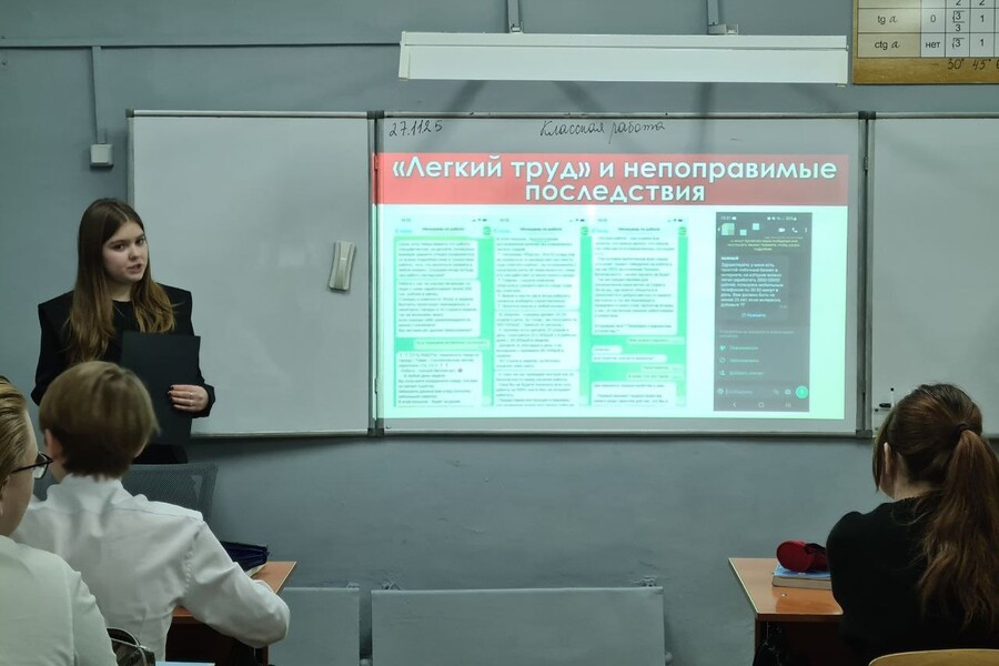 Учитывая базовую осведомленность учащихся о негативных последствиях употребления алкоголя, табачных изделий и наркотических средств, в рамках занятия особое внимание было уделено юридической и социальной ответственности, предусмотренной за совершение правонарушений, связанных с данными веществами. Подробно рассматривалась проблема вовлечения несовершеннолетних в противоправную деятельность под видом «легкого заработка», раскрывались распространенные схемы вербовки и разъяснялись возможные последствия участия в них.
