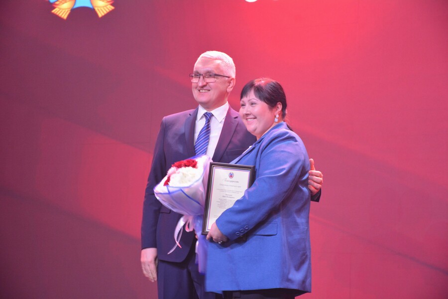 Для приветствия и награждения на сцену поднялась заместитель министра образования и науки Алтайского края Галина Синицына. Она наградила преподавателей филиала Почетной грамотой Министерства образования и науки Алтайского края.