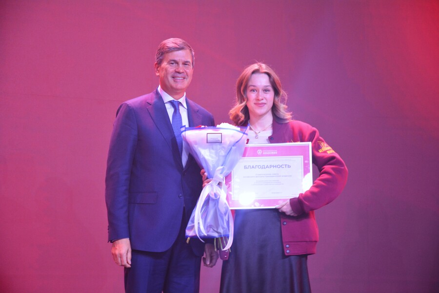 Для приветствия и награждения на сцену пригласили ректора Российской академии народного хозяйства и государственной службы при Президенте Российской Федерации Алексей Комиссарова.