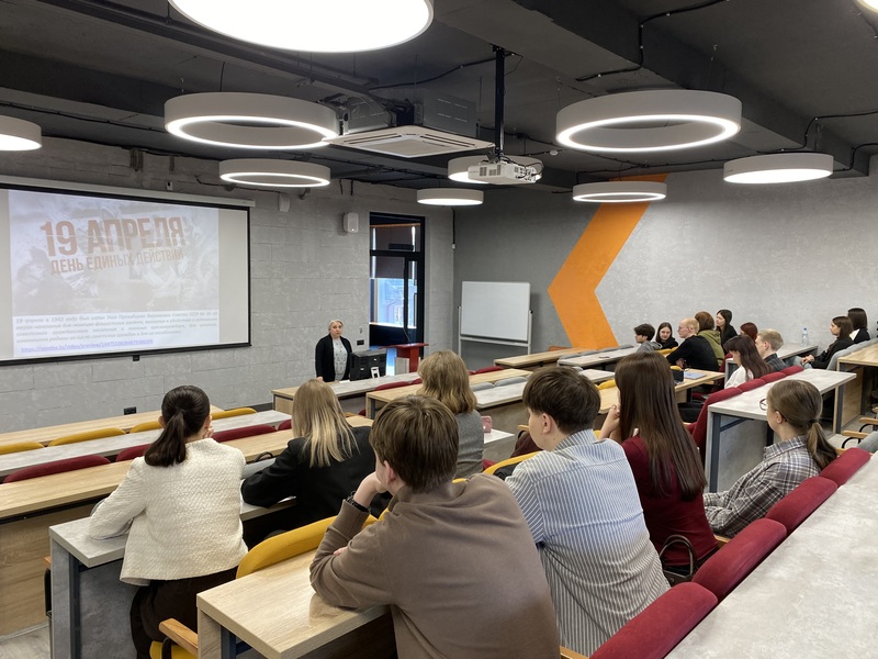 В ходе мероприятия студенты посмотрели тематические видеоматериалы, раскрывающие детали преступлений нацистов против мирного населения.