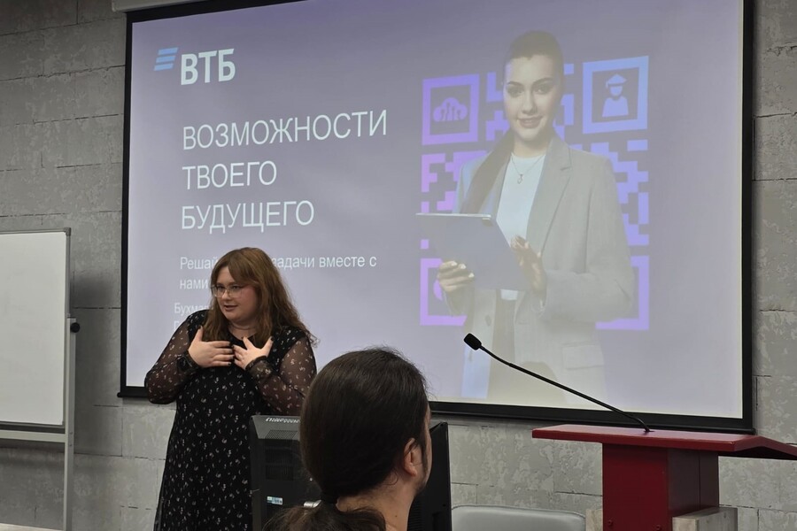 Анна Бухмастова, главный специалист группы подбора персонала по СФО Банка ВТБ, рассказала студентам про специфику работы в банке и варианты карьерных траекторий, которые есть у выпускников: back-office, бизнес-линия, работа в сфере среднего и малого бизнеса, корпоративно-инвестиционного бизнеса, розничного бизнеса и другие. Ребята узнали, как можно попасть на работу в ВТБ и что можно сделать уже сейчас для старта своей карьеры.