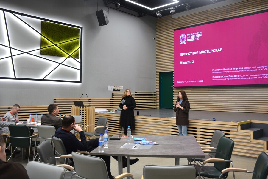 В Алтайском филиале РАНХиГС продолжается второй учебный модуль для участников программы «Алтай – земля героев». 10 декабря образовательный блок начался семинара «Социальная сфера и социальная политика в РФ. Культура: духовный фронт России». Спикерами выступили Елена Безрукова, министр культуры Алтайского края, Анатолий Гейко, кинорежиссер и нейрокреатор, а также Елена Хорошавцева, телеведущая и кинорежиссер телеканала «Катунь 24». Они обсудили важность культурной политики и ее влияние на общество.