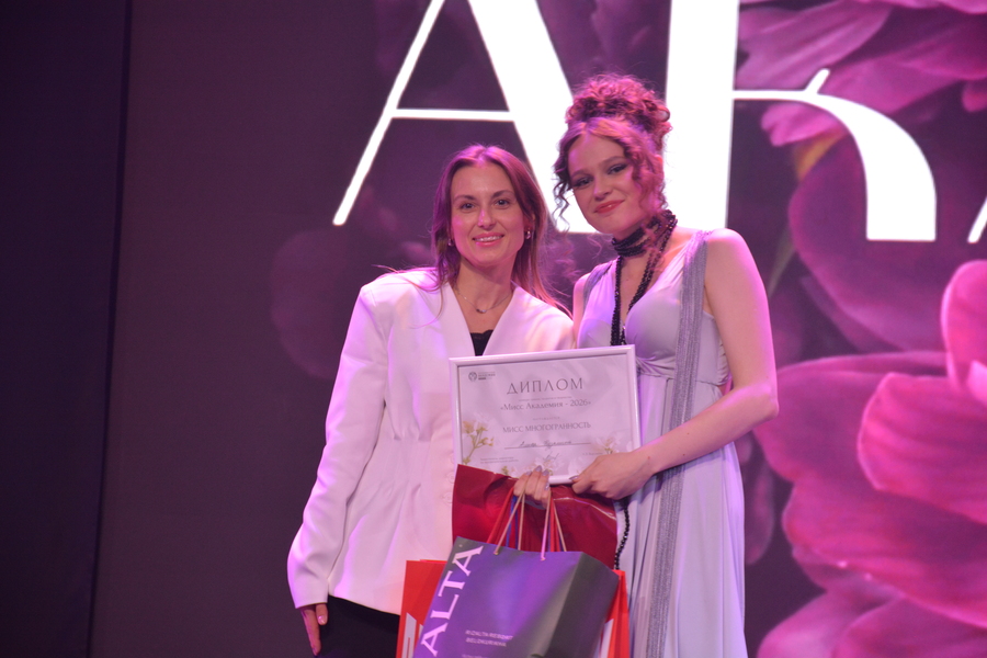 Титул «Мисс Академия – 2026» завоевала Эвелина Рева, студентка 1 курса направления «Государственное и муниципальное управление»! А «Вице-мисс Академия – 2026» стала Алиса Кузьмина, студентка 2 курса направления «Экономика».