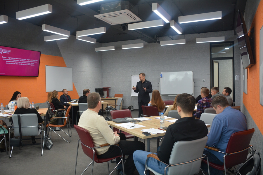 Первая часть «образовательного уикенда» была посвящена правовым основам бизнеса. Антонина Сорокина, заведующий кафедрой теоретико-исторических и государственно-правовых дисциплин, рассказала о правовой системе нашей страны. С Алексеем Чесноковым, доцентом кафедры частного права, слушатели рассмотрели вопросы корпоративного взаимодействия участников бизнеса, а также риски, возникающие при конфликтах с партнерами. О видах и пределах субсидиарной ответственности и договорной среде в бизнесе рассказала Наталья Вишневская, доцент кафедры частного права, руководитель ООО «Юридическое сообщество «Аргумент».