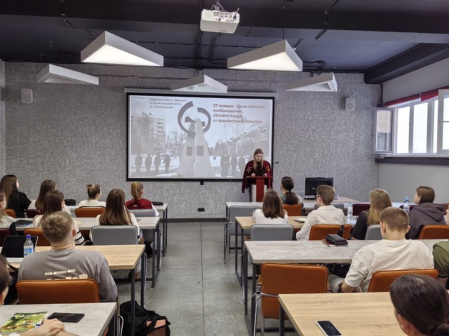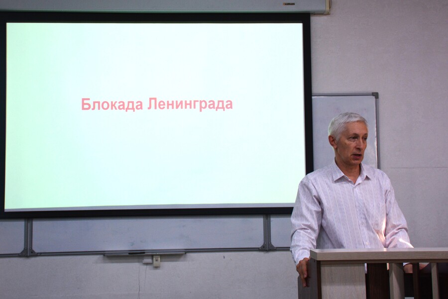 Виктор Исаев, доцент кафедры гуманитарных и естественнонаучных дисциплин, познакомил студентов с событиями Великой Отечественной войны и героической борьбы военнослужащих и жителей блокады Ленинграда с немецко-фашистскими захватчиками. Ленинград стал символом мужества, несгибаемости советского народа, стремившегося отстоять независимость народа.