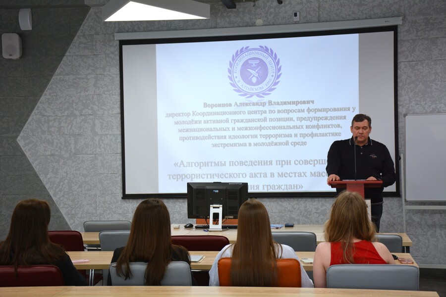У студентов направления «Медиакоммуникации» Алтайского филиала РАНХиГС прошла профилактическая встреча с Александром Воронцовым, директором Координационного центра по вопросам формирования у молодежи активной гражданской позиции, предупреждения межнациональных и межконфессиональных конфликтов, противодействия идеологии терроризма и профилактике экстремизма в молодежной среде.