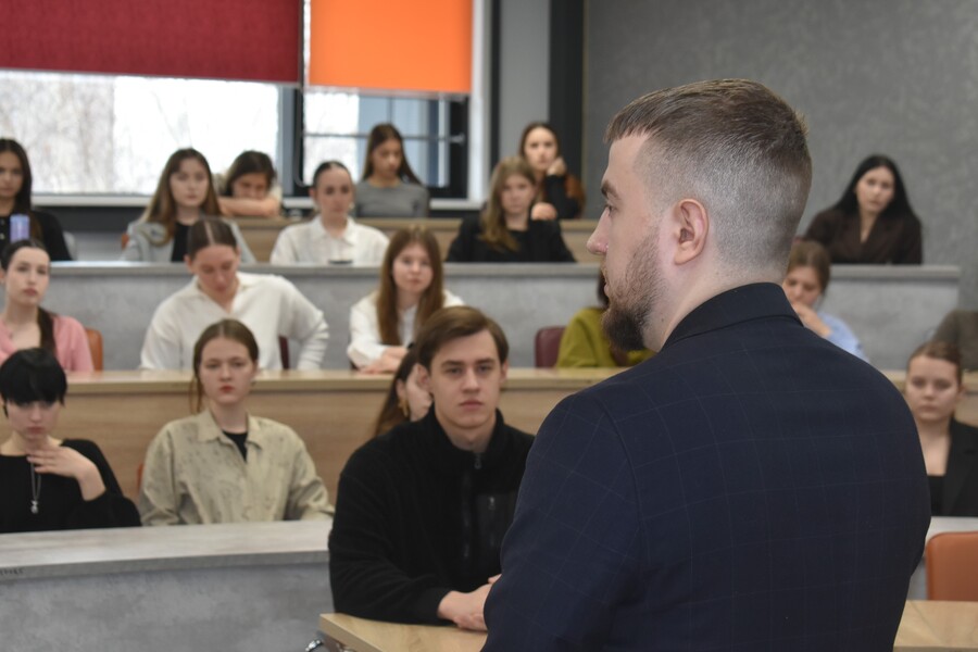 Студенты пообщались с Никитой Золотиным, следователем следственного отдела по Ленинскому району г. Донецк следственного управления Следственного комитета Российской Федерации по Донецкой Народной Республике, лейтенантом юстиции. Встречу организовали Центр карьеры и актив юридического факультета.