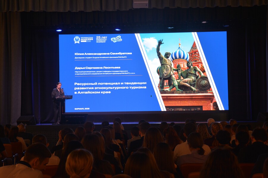 В Алтайском филиале РАНХиГС стартовала XIX Всероссийская научно-практическая конференция студентов и молодых ученых «Россия в XXI веке: глобальные вызовы, приоритеты и перспективы развития», посвященная Году единства народов России. Она пройдет 14 и 15 апреля.