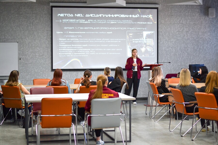 Школа актива – это уникальное мероприятие! Именно она направлена на коммуникацию студентов, и ребята имеют отличную возможность найти единомышленников не только на своем, но и на других направлениях обучения. «Шаг в будущее» прошел в тематике современных вызовов и новых технологий. За один день активисты смогли полностью погрузиться в атмосферу обучения, пройдя две образовательные площадки, направленные на развитие креативного мышления и изучение командных ролей, и применяли знания на практике. День был наполнен позитивными и яркими эмоциями, и мы надеемся, что он на долгие годы останется в памяти ребят!