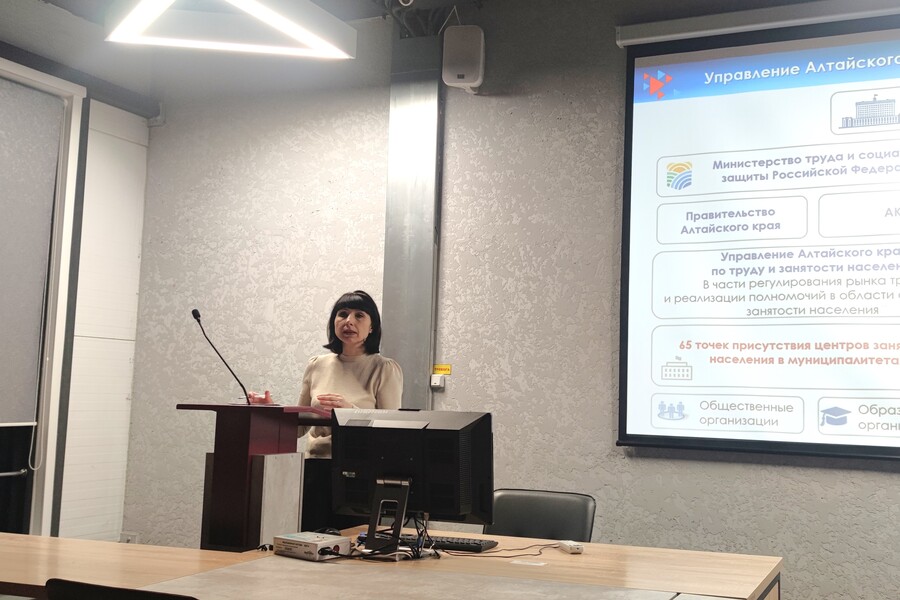 В рамках федеральной образовательной программы «Обучение служением» в Алтайском филиале РАНХиГС прошла встреча студентов 1 курса направления «Медиакоммуникации» с представителями Управления Алтайского края по труду и занятости населения.