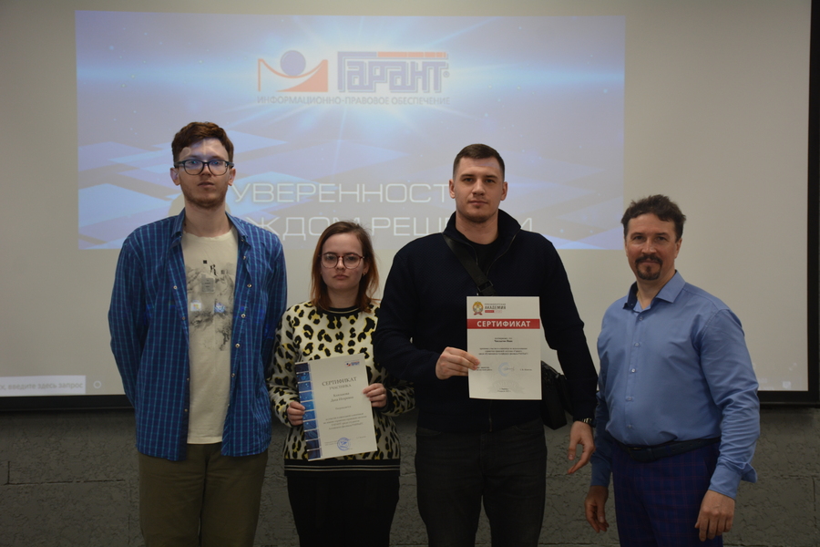В торжественной обстановке награды студентам Академии вручили организатор олимпиады, доцент кафедры гуманитарных и естественнонаучных дисциплин Виталий Лопухов и специалист по работе с учебными заведениями Информационного центра «Гарант» в городе Барнауле Максим Менщиков. Победители олимпиады были отмечены дипломами от РАНХиГС и компании «Гарант», а 26 активных участников – сертификатами. Также всем вручили фирменную сувенирную продукцию от Информационного центра.