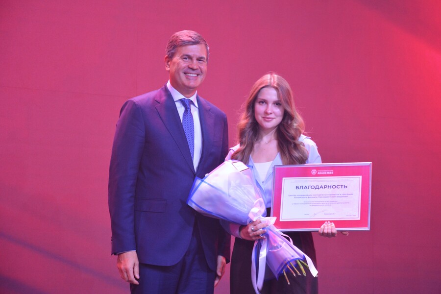 Студенты Академии входят в число депутатов Молодежного Парламента Барнаула и края, становятся членами Молодежного Правительства Алтайского края. Организуют социально значимые мероприятия для города и региона. Для приветствия и вручения наград на сцену поднялись Сенатор Российской Федерации, Заместитель председателя Комитета Совета Федерации по Регламенту и организации парламентской деятельности, представитель от законодательного органа власти Алтайского края Виктор Зобнев и Сенатор Российской Федерации, представитель от исполнительного органа государственной власти Алтайского края Наталья Кувшинова.