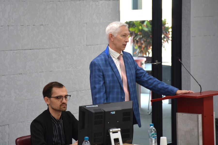 С приветственным словом выступил Виктор Исаев, доцент кафедры гуманитарных и естественно-научных дисциплин Алтайского филиала РАНХиГС, к.и.н.